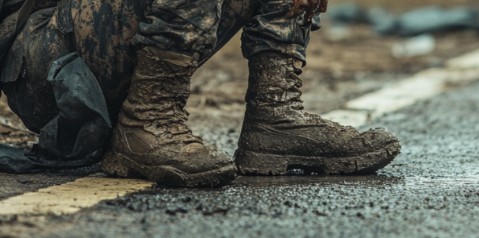 훈련소에서는 군화를 착용한 채로 장거리 행군을 하게 됩니다.