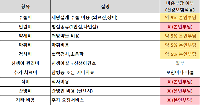 맞아요, 기존에 제왕절개 비용 5% 부담금이었던 것도 이제 안 내도 된다는 거죠!