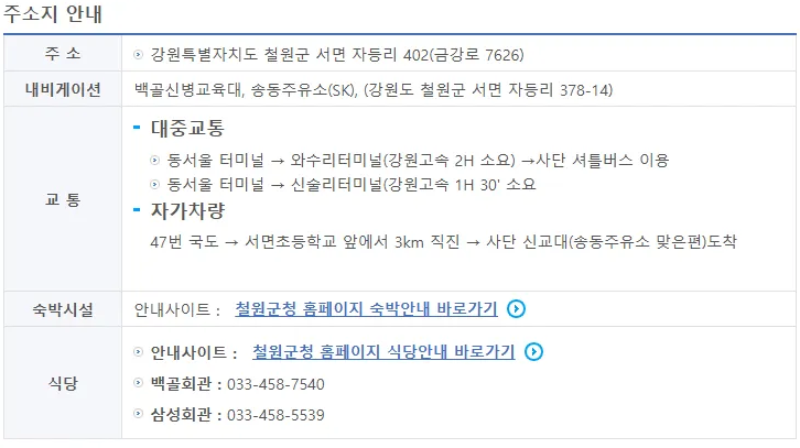 - 내비게이션 검색어: 백골신병교육대, 송동주유소(SK), (강원도 철원군 서면 자등리 378-14)