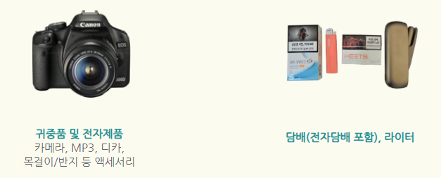 - 의약품 (개인 처방전 없이 반입 불가)