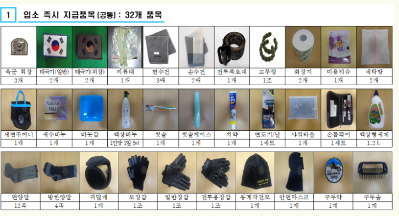 1. 논산훈련소 지급 품목
